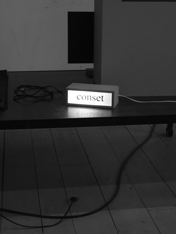 The active involvement of diverse publics, reprocessing and radical interpretation of ones own production fuels new significance, advancing the capacity for dialogue and for articulation of society through art. A Conset egy ideiglenes intézmény, mely különböző szerzői műhelyek köré épül. A meghívottak által hozott tematikák és szerzői gyakorlatok mellé a publicitás különböző formáját dolgozzuk ki, melyek a művészeti gyakorlat minél tágabb kontextualizálását szolgálják, hozzácsatolva művészeti szférán kívüli ismereteket is. A Conset céljai közé tartozik azon különböző szerzői pozíciók felülvizsgálása, melyek otthonossá váltak a mai intézményekben. Megfelelő teret kívánunk nyújtani a kontemplációhoz, új munkák létrehozásához, de ezzel párhuzamosan egy olyan kísérleti intézményi formát modellezünk, mely tágíthatja az elvárások horizontját és a jelentéshordozó keretet. Meggyőződésünk, hogy az intézményes formák újragondolása, az infrastruktúrához és az egymáshoz való visszonyaink egyeztetése szükséges ahhoz, hogy meghaladjuk ezt a történelmi holtpontot.